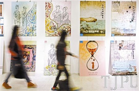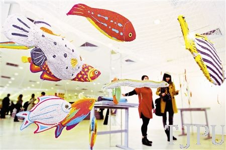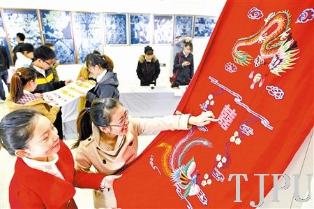 昨天,天津工业大学举行以“传承、发展与创新”为主题的纺织类非物质文化遗产创意创新作品竞赛,通过融入文化遗产特色元素的创意作品,激发师生对传统文化的热爱、培养创新精神与实践能力。本报记者 曹彤 王晓明 摄