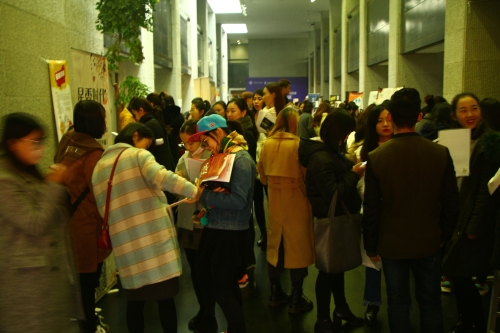2016年11月5日上午,由我校艺术与服装学院举办的艺术类冬季双选会在学院一楼大厅举办。来自天津、北京和上海等城市的40余家用人单位参加了招聘会,提供近千个岗位。本期双选会提供的职位多为艺术类专业,也有无专业限制的其他职位,部分公司还提供了大量实习职位。