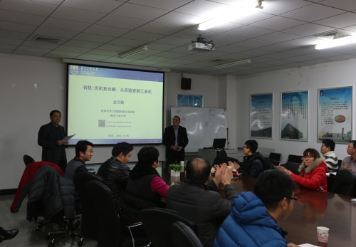 2016年12月5日上午,南京工业大学材料化学工程国家重点实验室常务副主任金万勤教授应邀访问分离膜与膜过程国家重点实验室(以下简称“重点实验室”),并为我校师生作学术报告。报告会由重点实验室副主任张玉忠主持,材料学院副院长张桂芳和王薇(挂职),重点实验室李建新、何本桥、李振环,以及青年教师和研究生等60余人参加了本次报告会。