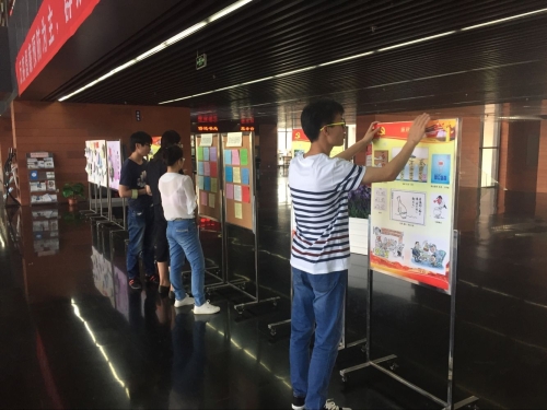 本次展览共分为三个板块,分别为优秀廉政漫画作品展、时代楷模先进事迹、廉政影视作品影评。廉政优秀漫画作品包括漫画版《党员廉洁自律规范》以及其他优秀单幅作品,生动形象,简单明了。时代楷模板块描绘了廖俊波等同志一心为民的人民好公仆形象。廉政影视作品影评则是通过广泛征集,由同学们用笔写下心目中的廉政影视作品并进行评述,作品涵盖电影、电视剧、微电影等类型。