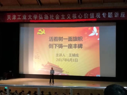 6月1日下午,我校在艺缘活动中心礼堂举行了弘扬社会主义核心价值观专题讲座。全国未成年人思想道德建设工作先进工作者、天津师范大学副局级退休干部王辅成老师作了题为“活着树一面旗帜倒下铸一座丰碑”的主题讲座。学工部、校团委全体老师,全体辅导员,学生党员及入党积极分子共计700余人聆听了讲座。