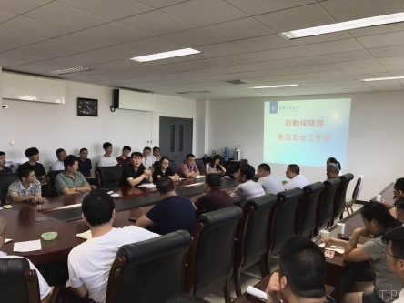 2017年8月24日上午,后勤保障部新学期食品安全工作会在四楼会议室召开。后勤保障部主任寇士军、党委书记王楠,后勤保障部采购服务中心经理刘桂明、膳食管理科全体管理人员参会。会议由膳食管理科科长祁林付主持,各食堂窗口50余名负责人参加。
