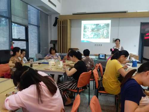 讲座中,刘峄老师讲述了压花文化的起源、兴起、门类等知识。随后,刘老师在现场指导教职工制作压花吊坠。每位老师都认真操作,仔细设计,完成了件件精美独特的压花作品。