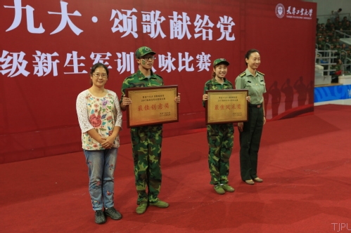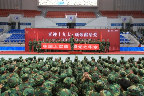 9月25日下午,天津工业大学“喜迎十九大,颂歌献给党”2017级新生军训歌咏比赛在我校体育馆举行。