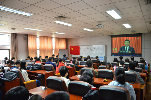 十九大是全面建成小康社会的决胜阶段、中国特色社会主义发展关键时期召开的一次十分重要的大会,将为未来中国发展绘制宏伟蓝图。通过观看直播,师生们更加坚定了理想信念。作为新时代的师生,我们要永葆不忘初心、继续前进的奋斗本色,担负起建设现代化强国的责任,为实现中华民族伟大中国梦不懈奋斗!为实现“两个一百年”目标而奋进!(审稿:管理学院 朱士凤 编辑:宣传部 张文涛)