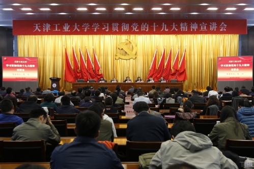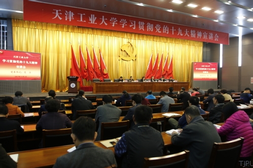 为深入学习贯彻党的十九大精神,迅速兴起学习热潮,2017年11月2日,天津工业大学学习贯彻党的十九大精神宣讲会在校学术中心隆重举行。校党委书记连洁主持会议并对十九大报告的精神进行宣讲和动员部署。校领导刘亚男、赵宏、裴军、王晨亮、程博闻出席会议。
