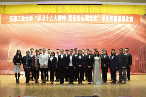 为学习贯彻落实党的十九大精神,在校园里兴起学习十九大精神的热潮,2017年11月1日晚,天津工业大学“学习十九大精神,坚定信心跟党走”学生朗诵演讲比赛在艺缘活动中心二楼多功能厅成功举行。来自各学院的11组选手参加了本次朗诵演讲比赛。