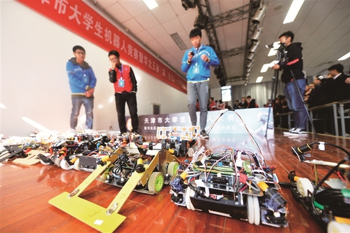 渤海早报讯(记者 于强 通讯员 扶婧雨 姚登泰)10月28日-29日,由市教委主办、天津工业大学承办的第五届天津市大学生机器人竞赛暨华北五省(市、自治区)大学生机器人大赛天津赛区竞赛在天津工业大学举行。本次大赛吸引了天津大学、天津师范大学、天津工业大学等本市16所高校,按大类分286支队伍,按小项分391支队伍踊跃参加,促进了参赛选手间创意创新思维的交流与碰撞。