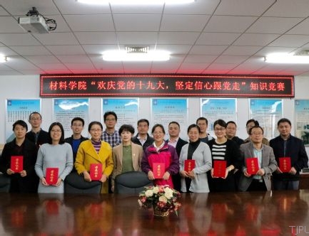 为进一步推动社会主义核心价值观宣传教育,引导学院全体师生坚定理想信念,激发爱国爱党热情,为实现伟大的中国梦奉献自己的才智,在学院内营造庆祝党的十九大召开的浓厚热烈氛围,学院党委于11月9日在材料学院全体教职工党员中开展“欢庆党的十九大 坚定信心跟党走”知识竞赛。