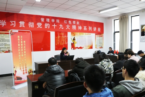 为深入学习贯彻党的十九大精神,深刻理解和把握爱国主义精神实质,2017年11月22日,马克思主义学院赵丽华老师受邀做客管理学院“红色领航”基地,以“不忘初心跟党走,筑梦路上爱国情”为题为大家带来了热情饱满的讲座,深度解读了筑梦大道上的爱国情怀。管理学院学生党员代表、积极分子代表30余人参加了此次活动。