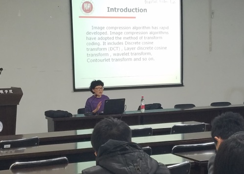 2017年12月20日,电子与信息工程学院邀请天津市通信学会高教分会理事、天津师范大学电子与通信工程学院张宝菊教授在学院4A301会议室为学院师生作了题为“基于压缩感知的图像稀疏化算法的研究”的学术报告。