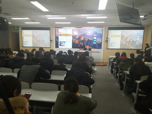 超星集团产品培训师单心为学生带来了泛雅网络教学平台及超星学习通应用讲座。同学们现场体验手机签到、大数据选人、直播现场等课堂教学互动活动,使学生体验到在学习通的首页检索即可实现海量资源查询及收藏,所有的资源都为学生提供现代化移动学习服务。