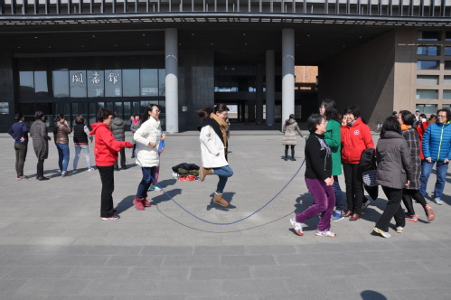 2018年3月8日中午1点,系列活动第一场在图书馆励志广场前拉开帷幕,我校300余名女教工参加了集体跳绳比赛。在和煦的春风里,女教工们群起跳跃,激扬青春,在节日的氛围里欢欣愉悦。最终,电信学院获一等奖,机关1队和电气学院获二等奖,管理学院、后勤和计算机学院获三等奖,其余12个参赛队获鼓励奖。