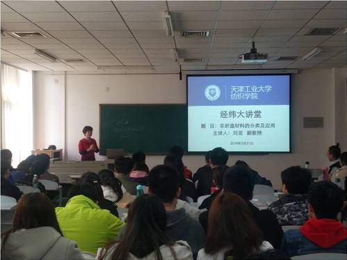 讲座伊始,党委副书记倪娟老师简要介绍了此次讲座的目的,对同学们提出了殷切期望,并为大家介绍了刘亚副教授。讲座中,刘亚老师首先为大家介绍了非织产品及其生产过程,详细地讲解了非织产品的分类和用途,并为大家展示大量的生产工艺方法及产品图片,帮助同学们了解非织行业的基本情况。随后,刘亚老师又与大家分享了非织行业的市场前景及发达国家产业用纺织品战略,介绍了我国“十三五”非织造材料发展机遇及各领域目前发展状况。