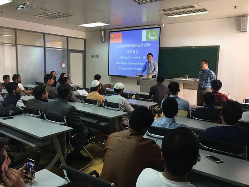 4月2日下午,我校与天津城建大学合作的巴基斯坦短期汉语培训班开学典礼在天津城建大学国际教育学院B203举行,天津城建大学国际教育学院院长张海、天津工业大学国际教育学院副院长王津,教师代表以及72名巴基斯坦学生参加了开学典礼。