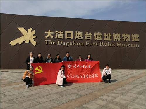 为更好地学习贯彻党的十九大和全国两会精神,积极践行社会主义核心价值观,严格执行党日制度,在组织生活中进一步坚定党员教师的理想信念、增强党性修养,2018年4月8日下午,电气工程与自动化学院基层党支部开展“勿忘国耻,砥砺前行”爱国主义教育主题党日活动,组织党员教师赴大沽口炮台遗址博物馆参观学习。