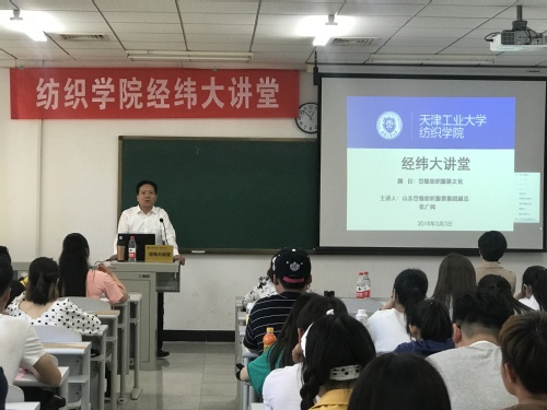 5月3日中午,纺织学院举办第29期经纬大讲堂,主题为“岱银纺织服装文化”,主讲人是山东岱银纺织服装集团张广闻副总经理。纺织学院党委副书记倪娟、山东岱银纺织服装集团人力资源部部长李燕、学办牛自委老师,以及纺织工程专业90多名学生参加了此次活动。