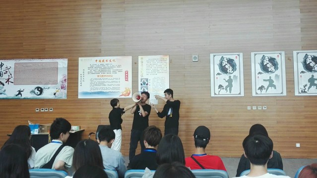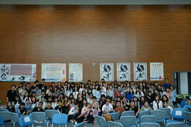 此次交流活动主要分为三个部分:才艺展示环节、中国结制作活动和自由交流活动。下午两点,日本爱知大学学生到达我校国际教育学院,在日语专业老师引导下与我校日语专业学生分组入席就坐。主持人宣布开场后,由爱知大学的两位同学发表了开场致辞。随后,由我校同学演唱歌曲«Butter fly»拉开了活动的序幕,气氛顿时活跃了起来,相声、古筝表演更是引得台下掌声不断。