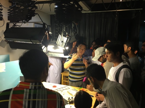 首先,留学生们参观天津工业大学计算机学院动画系。作为天津市第一所设置动画本科专业的高等学府,天津工业大学拥有加拿大INSPECK三维扫描系统等最新动画制作装备。动画系主任李铁老师及李飒、李文杰、刘配团等老师和部分学生都参与了接待、讲解工作。留学生们参观了动画系绿幕定格工作室、背景材料制作室、动态捕捉实验室等,了解了动画游戏设计制作过程、特效制作、定格动画原理、3D游戏技术的制作,以及动画制作设备的使用情况等中国动画产业技术创新的最新发展方向。