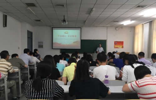 为深入学习贯彻习近平新时代中国特色社会主义思想和党的十九大精神,在推进“两学一做”学习教育常态化制度化中进一步深化“维护核心、铸就忠诚、担当作为、抓实支部”主题教育实践活动,环化学院于5月31日组织开展了“书记讲党课”主题活动,院党委书记许世超以“不忘初心 牢记使命——学习贯彻习近平新时代中国特色社会主义思想和党的十九大精神”为主题讲党课,学院近70名教师党员参加。