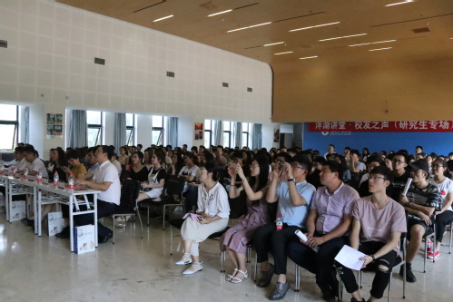 2018年6月1日周五下午,由学工部(研工部)、研究生院主办,校研究生会承办的泮湖讲堂•校友之声(研究生专场)在艺缘活动中心二楼多功能厅举行,特别邀请历届校研究生会优秀的学生干部分享自身研途经历和工作经验。学工部(研工部)部长王丽清,研究生教育管理中心主任、研究生团委书记王琛出席了此次活动,来自各学院200余名研究生代表也都到场聆听。