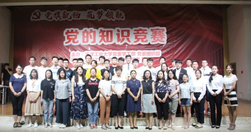 为庆祝建党97周年,深入学习宣传贯彻习近平新时代中国特色社会主义思想和党的十九大精神,6月15日晚上6:30,由党委组织部、党委学工部主办,环境与化学工程学院党委承办的“党旗飘扬 筑梦领航”党的知识竞赛在艺缘活动中心多功能厅举行。党委学工部部长王丽清、副部长覃兰静,环化学院党委书记许世超、副书记宋筱毓,学校14个学院的参赛队伍及各学院观摩师生百余人参加了此次竞赛活动。