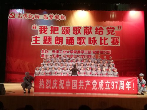 为迎接中国共产党成立97周年,热情讴歌党的光辉业绩,继承和发扬党的光荣传统和优良作风,2018年6月26日晚上,由校党委组织部、党委学工部主办,电气工程与自动化学院党委承办的“迎七一”“党旗飘扬筑梦领航”学生党建主题系列活动之“我把颂歌献给党”主题朗诵歌咏比赛在艺缘大礼堂成功举办。党委学工部部长张玉波,党委组织部副部长韩旭彤,党委学工部副部长覃兰静,电气学院党委副书记逯纪美出席,党委宣传部、校团委、电气学院相关师生参加本次活动。