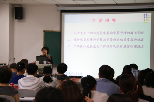杨老师根据习近平总书记关于加强党员发展和党员管理的有关论述,结合自己党建和思政工作35年的经历,从做好高校学生党员的发展、教育和管理三个方面作了详细阐释。进一步梳理了我校党员发展的流程,并就学生党员发展中容易出现的问题进行了重点讲解。