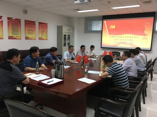 签约仪式结束后,共建党支部开展了首次主题学习交流活动。郑巴音处长就天津市人才新政与重点人才工作进行了政策解读与指导。他对天津工业大学人才引进、人才发展工作给予了充分肯定,希望再接再厉,持续努力,为加强天工大的“双一流”建设提供队伍保障。人事处肖强处长介绍了我校的人才工作和人才政策。副校长程博闻表示,希望能以党支部共建为起点,既提升双方党建工作水平,又要结合我校学科发展规划,加强我校高层次人才队伍建设,积极推动我校世界一流学科建设,积极支持市人力社保局人才流动开发处开展的“海河英才”行动计划招才引智活动。