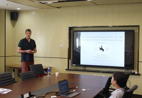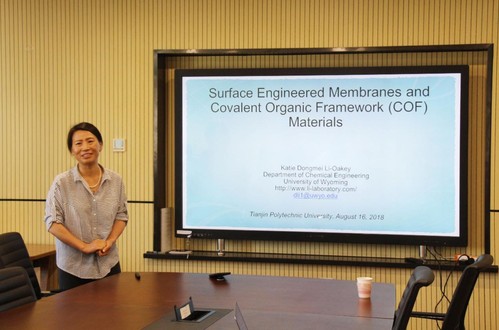 2018年8月16日,应我校分离膜与膜过程国家重点实验室/分离膜科学与技术国际联合研究中心李建新教授邀请,美国怀俄明大学化学工程系Katie Dongmei Li-Oakey和John Oakey副教授来我校进行学术交流访问。期间,两位教授分别为我校师生作了题为“Surface Engineered Membranes and 2-D Covalent Organic Frameworks (COF)”和“Microfabricated Intracellular and Extracellular Niches”的学术报告,来自分离膜与膜过程国家重点实验室、材料学院、环化学院的40余名师生参加了此次报告会,报告会由李建新教授主持。