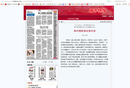 2018年6月8日,《城市快报》第6版以《海河摄影展征集结束》为题对我校做了报道,现将全文转发如下,以飨读者。