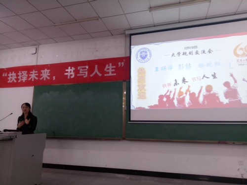 2018年9月8日下午,值我校建校60周年之际,材料学院邀请了中科院化学所王丽华教授、北京玻钢院复合材料有限公司彭喆博士以及纺织学院徐沈阳同学三位嘉宾在材料学院A107为17级创新班同学开展了一次主题为“抉择未来 书写人生”的大学规划交流会。交流会由17级学生李铱蔓主持。