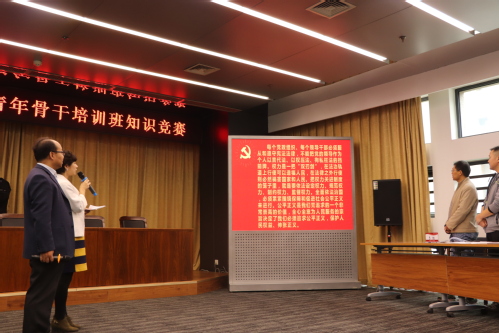 为进一步深入学习贯彻习近平新时代中国特色社会主义思想,推动中青年骨干培训班学员的学习热情,巩固拓展党校学习教育成果,党校第1期中青年骨干培训班于10月25日在党校教室开展了知识竞赛活动,组织部正处级组织员杨文华老师、党校薛婷老师担任嘉宾。