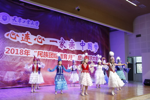 11月8日下午,“心连心 一家亲 中国梦”天津工业大学2018年“民族团结教育月”总结展示大会在艺缘活动中心多功能厅举行。校党委组织部部长刘宏韬、宣传部部长王军杰、统战部部长张健华、学工部部长张玉波、校团委书记范甜出席活动。各学院党委副书记、新疆内派教师、分管少数民族工作辅导员及各学院学生代表近300人参加了展示大会。