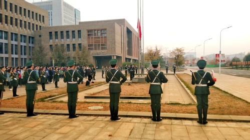2018年11月19日清晨,计算机科学与技术学院在行政中心广场举行以“心系国旗记党恩,争做时代好青年”为主题的升旗仪式。计算机科学与技术学院辅导员和18级全体新生、16级党员、发展对象共计770余人参加了升旗仪式。