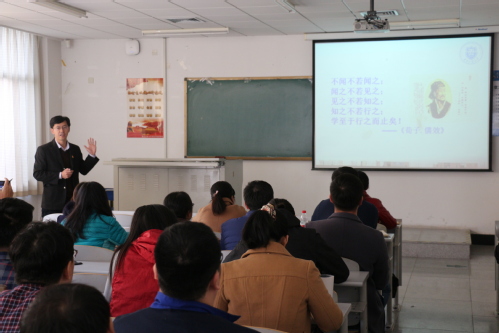 讲座中,齐书记通过引用传统经典文章和实际教学案例解读了从“知之”到“行之”的培养过程,强调教育包含价值塑造、能力培养、知识传授三个层次,要培养学生从思想上和能力上达到国家、社会对大学生的要求;以教育子女为例讲述应指导学生尽早做好人生规划、目标管理,并从管理学的角度说明了心态和沟通在学生教育中的重要性。齐书记将多年教育教学及学生管理经验通过详实的案例和深入浅出的讲解与各位老师进行了分享,得到了在场教师的一致好评。