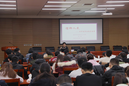12月5日下午,我校开展天津市优秀辅导员巡讲习近平新时代中国特色社会主义思想活动,特邀请南开大学马克思主义学院党委副书记、副院长刘一博老师作题为《信仰人民——用中国梦激扬青春梦》的专题讲座。各学院辅导员、学生党员、学生骨干参加了此次讲座。