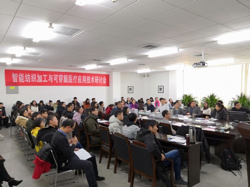 2019年1月16日上午,天津工业大学智能纺织加工与可穿戴医疗应用技术研讨会在电子与信息工程学院4B303会议室召开,来自台湾逢甲大学的林佳弘教授、台湾亚洲大学的楼静文教授、纺织科学与工程学院副院长刘雍教授、智能可穿戴电子纺织品研究所副所长刘皓副教授、电子与信息工程学院党委书记李红霞教授、院长肖志涛教授、副院长白华副教授、生物医学工程系主任王慧泉副教授,以及相关学院和兄弟院校的师生参加了会议。