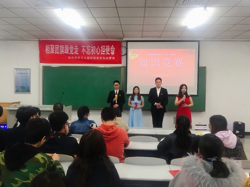 为推进“学习强国”平台、青年大学习等学习工作常态化,强化青年学生学习意识,激发学习兴趣,提升理论水平,实现“以赛促学”的目的,纺织科学与工程学院于3月28日晚上在E112开展了“相聚团旗跟党走,不忘初心担使命”主题党团知识竞赛。非织系本科生党支部书记牛自委老师、纺织系本科第一党支部书记陈文洋老师参加此次活动。