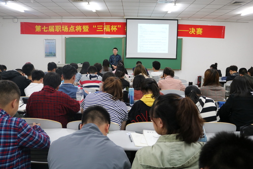 为加强就业指导力度,创新就业指导方式,提升学生就业能力,使同学们对求职有更直观的体验,2019年4月24日晚,纺织科学与工程学院招生就业协会与三福时尚集团在学院E112教室联合举办了第七届职场点将暨 “三福杯”模拟面试挑战赛。出席本次活动的评委有三福时尚集团人事负责人尚凯新、三福时尚集团职能招聘负责人王慧慧、学院招生就业协会指导老师石睫老师、辅导员牛自委老师,本次活动吸引我校百余名学生前来观看。