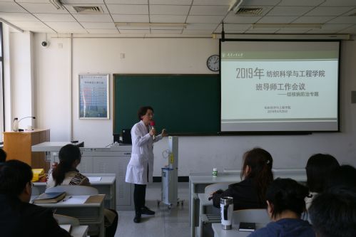 2019年4月25日,纺织科学与工程学院在F211会议室召开了全体班导师结核病防治工作部署会,邀请西青区结核病防治所防治科医师贾婧雯和校医院耿雪荞大夫作专题讲座,会议由学院党委副书记倪娟主持,全院班导师和辅导员出席。