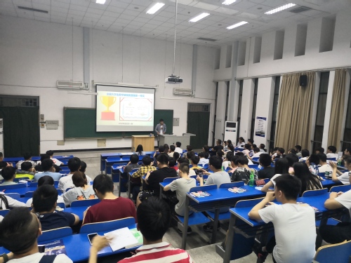 接下来,计算机科学与技术学院就业先锋陈成发表了题为“因为喜爱,所以执着”的主题宣讲。喜爱很简单,热爱却很难,与寂寞为伴独自坚持更是不易。陈成以坚定的口吻向在场同学叙述自己在队友选择离开科研团队后,自己一人仍咬牙坚持、不眠不休,砥砺前行,直到荣获ACM-ICPC中国大学生程序设计竞赛金奖、国际大学生程序设计竞赛亚洲区决赛银奖,打破我校记录的励志故事。因奋进,故优秀;因坚守,故铸就榜样力量。