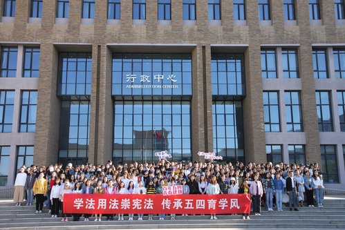 2019年5月20日清晨,法学院师生代表在学校行政中心广场,庄严地举行了“学法用法崇宪法 传承五四育学风”主题升旗活动,通过升旗仪式及主题展示,普及宪法知识,弘扬五四精神,培育优良学风。