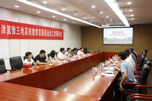 2019年7月7日上午,津冀豫三地高校教育发展基金会工作研讨会在我校行政中心第五会议室成功举办,我校党委副书记陈泮成出席,来自河南大学、郑州大学、河南师范大学、河北工业大学、天津财经大学、天津工业大学等高校基金会理事长、秘书长近20人参加了会议,会议由天津工业大学基金会理事长、校友办主任刘栋主持。