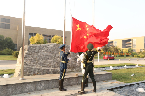 云天收夏色,木叶动秋声。为庆祝新中国成立70周年,激发党员干部与青年学子的爱国情怀,2019年9月30日清晨,天津工业大学在行政中心前广场举行升国旗仪式,校领导俞绍平、夏长亮、陈泮成、赵宏、王晨亮、陈莉,以及机关分党委教工党员、各学院师生党员代表参加升旗仪式。