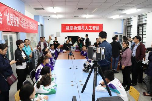 为庆祝祖国成立七十周年,同时,也为进一步深入贯彻习近平总书记“科技创新、科学普及是实现创新发展的两翼,要把科学普及放在与科技创新同等重要的位置”的重要指示,普及科学知识、弘扬科学精神、传播科学思想、倡导科学方法,2019年10月7日,由中国图象图形学学会主办,视觉检测专委会、天津工业大学人工智能学院和电气工程与自动化学院共同承办的“视觉检测与人工智能”中小学生科普教育主题系列活动在我校举行。来自天津市南开中学、天津市河西中心小学、天津市南开实验学校等的30余名中小学生参加活动。人工智能学院副院长宋丽梅教授等教学科研一线教师和部分在校本科生和研究生参与了本次活动的组织、协调及现场演示等工作。