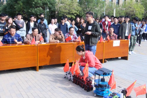 本次竞赛分为创新创意赛和工程赛两个项目,参赛同学积极踊跃,报名队伍数接近80支,参赛人员来自我校纺织学院、机械学院、电气学院、信息学院、计算机学院、理学院、管理学院等。在比赛现场,创新创意赛的同学们通过PPT、图片、视频等形式展示创新作品,评委对同学们的创新想法表示肯定和鼓励,并逐一进行点评和指导;参加工程赛的同学逐一展示实物作品,智能循迹小车、电脑鼠走迷宫等获得评委和观众的阵阵掌声,其中跳舞机器人以绚丽的舞姿为祖国庆生,比赛达到了高潮,整个比赛现场气氛热烈,同学们比赛热情高涨。