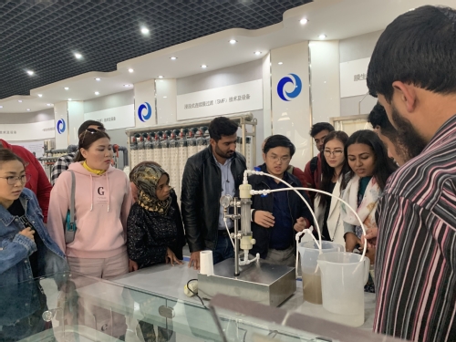10月22日下午,中国政府奖学金生在老师的带领下参观了坐落在滨海新区的天津膜天膜科技股份有限公司。据悉,该公司前身为1974年成立的天津工业大学膜分离研究所。作为中国第一支中空纤维膜组件诞生地,公司已服务市政给水和污水处理及回用、工业给水和废水处理与回用、海水淡化、饮用水净化、生物制药净化、浓缩及分离处理等多个领域。产品远销欧美、中东、东南亚等30多个国家和地区,迄今已在国内外完成数千项膜法水处理项目。在专业人员的讲解下,整个参观的过程给中国政府奖学金生留下了深刻的印象,留学生们由衷地感叹高校科研成果造福社会之贡献以及中国科技发展之迅速,这极大地鼓舞了来津留学的中国政府奖学金生在自己的研究领域创新创造的斗志。