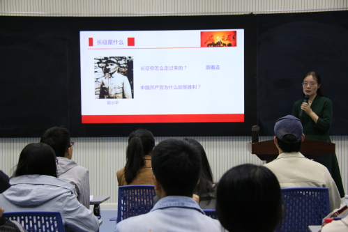 11月4日晚,“红船精神传承班”——“卓越管理者培养计划”第八期学生党员一起聆听了由天津师范大学副教授王淑辉带来的主题为“长征精神”的党课。