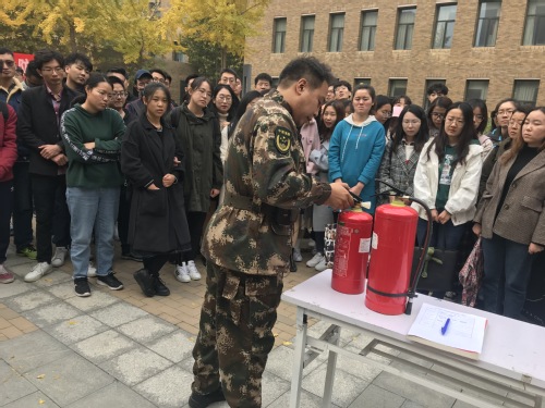 最后,校保卫处张晓峰老师向师生讲解了消防演练的相关知识,介绍了火灾的种类,讲解了如何防范、自救、逃生,重点讲解并示范了灭火器的使用方法及注意事项。在场师生有秩序地参与到演练中,切身体验灭火器的正确使用方法,整个演练用时1小时左右顺利结束。